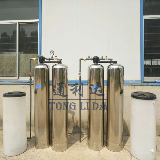 首先折下软化水设备进出水管路,排污管,吸盐管,取下控制阀机头。抽出软化水设备管,检查下布水器是否有损坏现象,在这里如果罐体直径大于500的可以不用取出管。然后利用软化水设备虹吸原理抽出软化树脂(如果之前管和下布水器没有损坏可以接着放到新树脂罐内使用),并把管上方口堵住,防址树脂倒入管内。装树脂前清洗双手,然后将树脂从罐口倒入罐中,装入量约到罐体百分之70左右就够了。接下来将控制阀机头装上,连接好进出水,排污及吸盐管路。把软化水控制阀调到反冲洗位置顺流再生小量给水,把树脂罐中的气排出,观察软化水设备有无漏水情况,软化水阀把反洗,吸盐,慢冲洗,快洗,注水等步骤走完后就自动回到正常工作状态。
