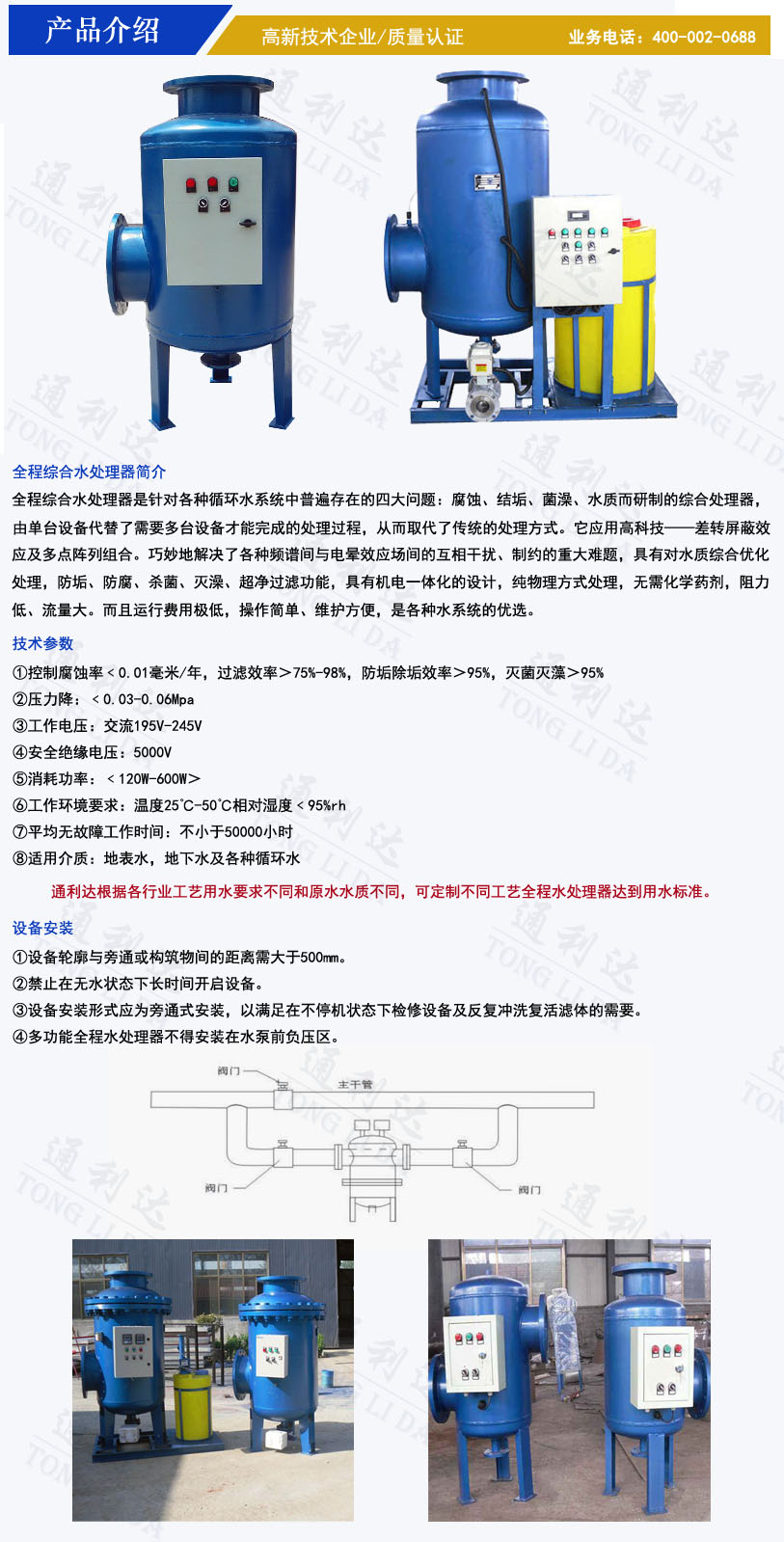 太阳成集团tyc1050全程综合水处理器是针对各种循环水系统中普遍存在的四大问题:腐蚀、结垢、菌藻、水质而研制的综合水处理器,由单台设备代替了需要多台设备才能完成的处理过程,从而取代了传统的处理方式。